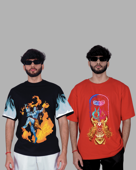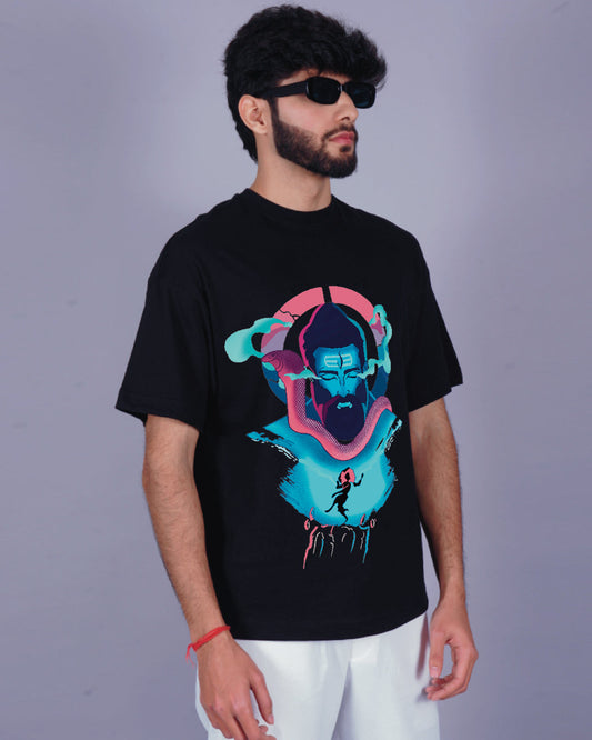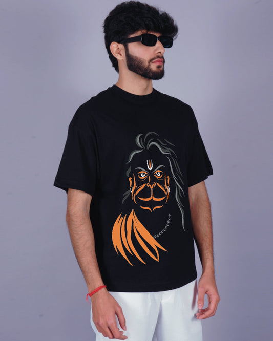 Hanuman Boldness: Black Urban Oversized T Shirt