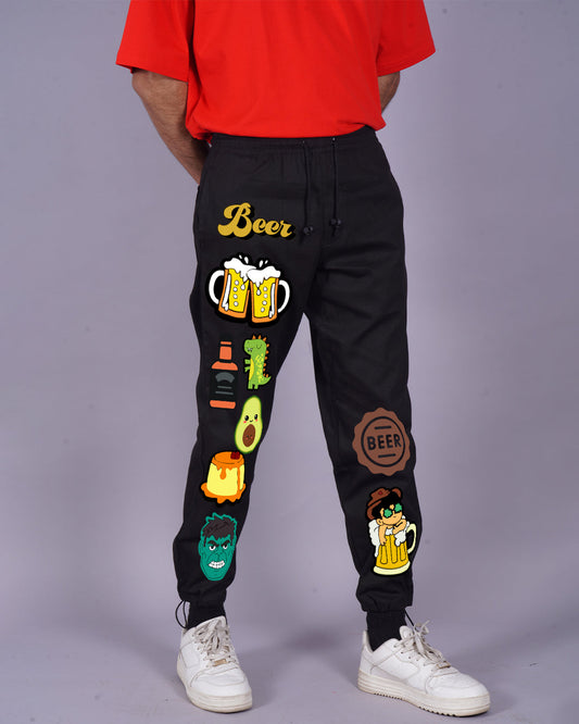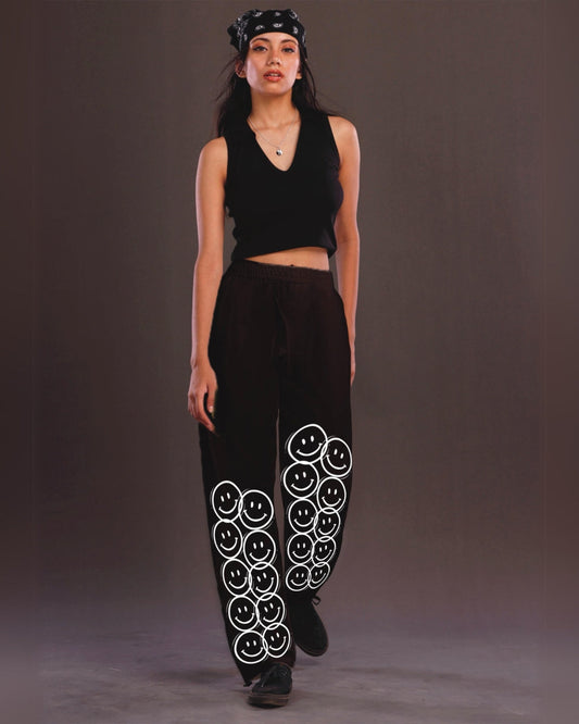 Men Black Cargo Pants with Playful Smiley