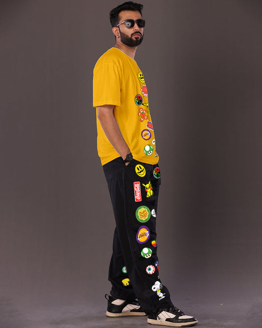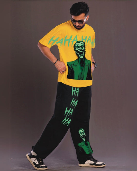 Happy Joker Men's Oversized Yellow and Black Coord Set