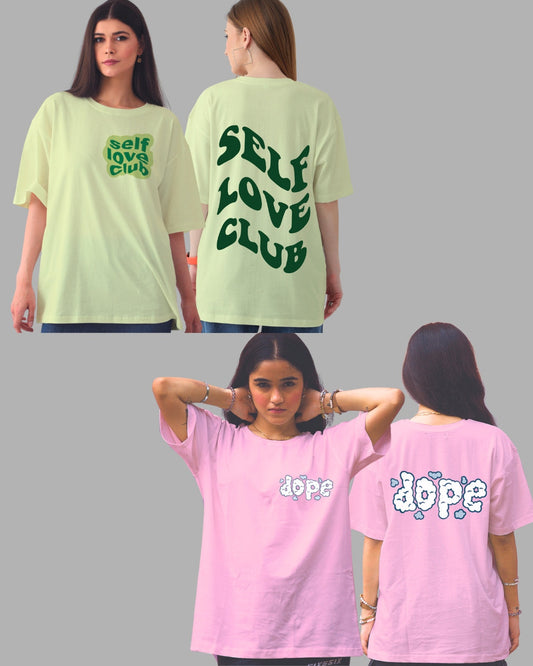 Bundle of 2 Women's Oversized Tees: Self Love and Dope Designs