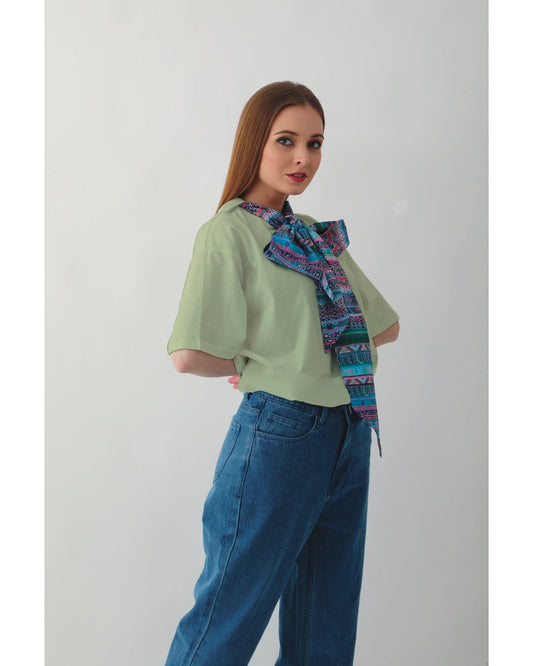 Classy Knot Neck Tie Cropped Tees : Mint Green