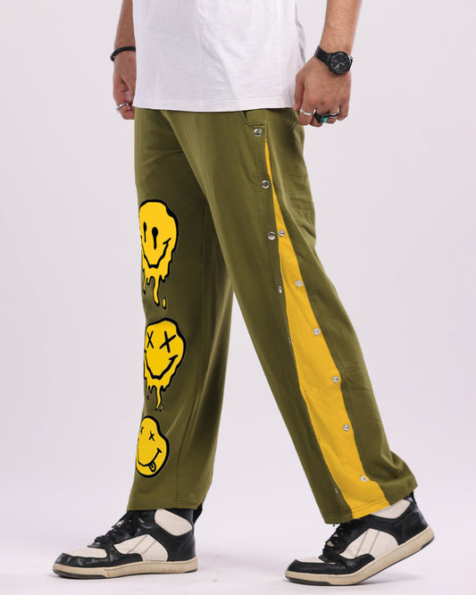 Men olive Snap Buttons Cotton trouser - Smiley