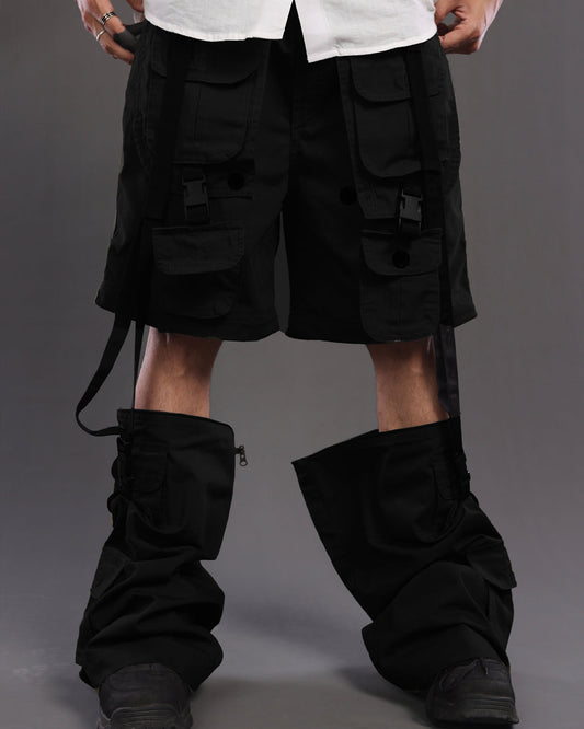 Men Black Adjustable Cargo Pants for Foodies
