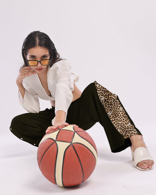 Black Cargo Pants for Women: Snap Button Cotton Trouser
