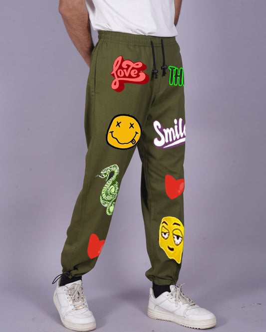 Men Olive Cargo Pants - Love Smiley Design