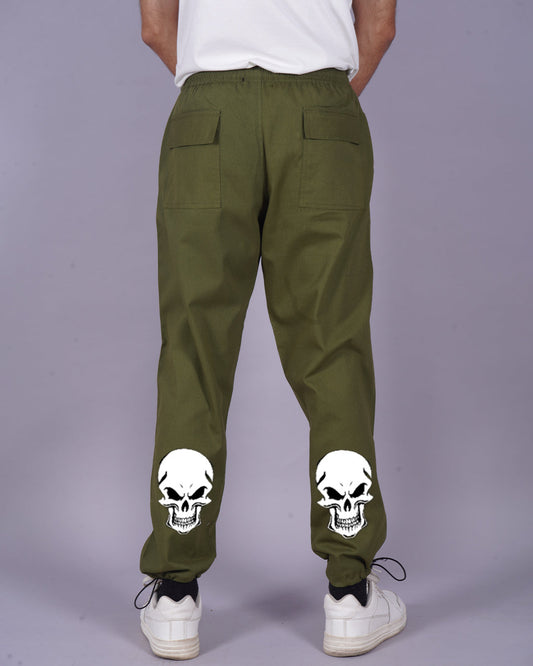Sold outMen Olive Cargo Pants - Skull Print