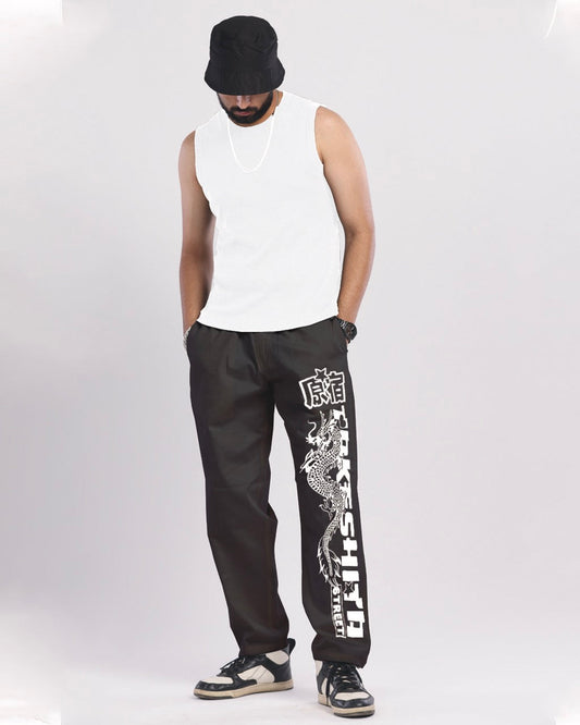 Manga Marvel: Men Black Cargo Pants with Bankai Design