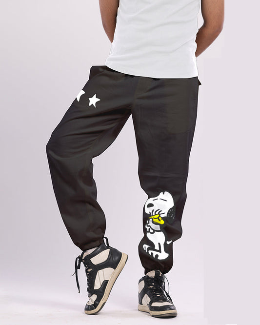 Black Cargo Adjustable Pants with Snoopy Design