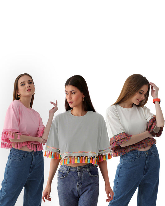 Bundle of 3 Women's Oversized Tops: Loose-Fit Tassel Style in 100% Cotton