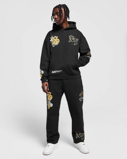 Men's NY Dragon Hoodie Oversized Co-ord Set - Black and Black