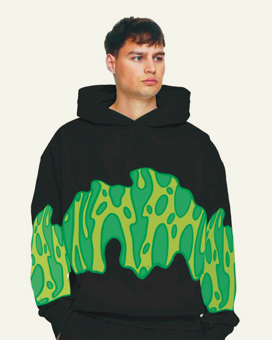 Men's Green Code Hoodie Oversized Co-ord Set - Black and Black