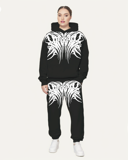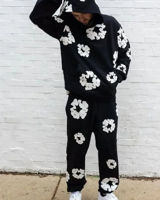 Men's Flower World Hoodie Oversized Co-ord Set - Black and Black