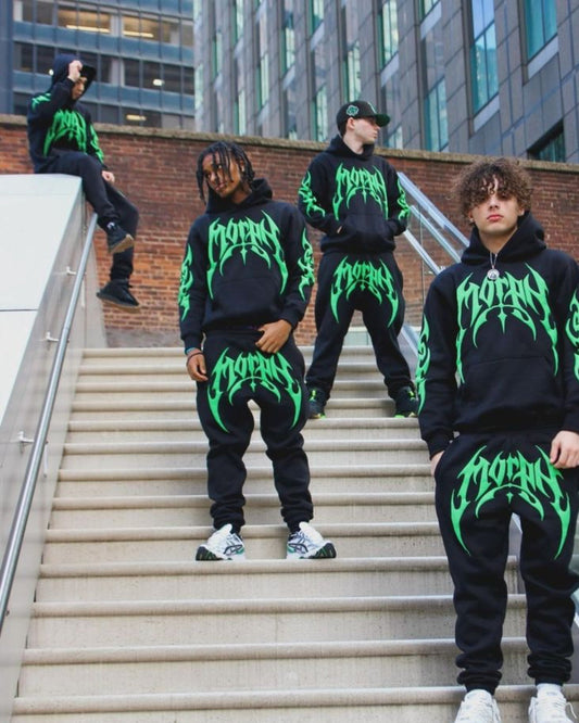 Men's Green Fire Edition Hoodie Oversized Co-ord Set - Black and Black