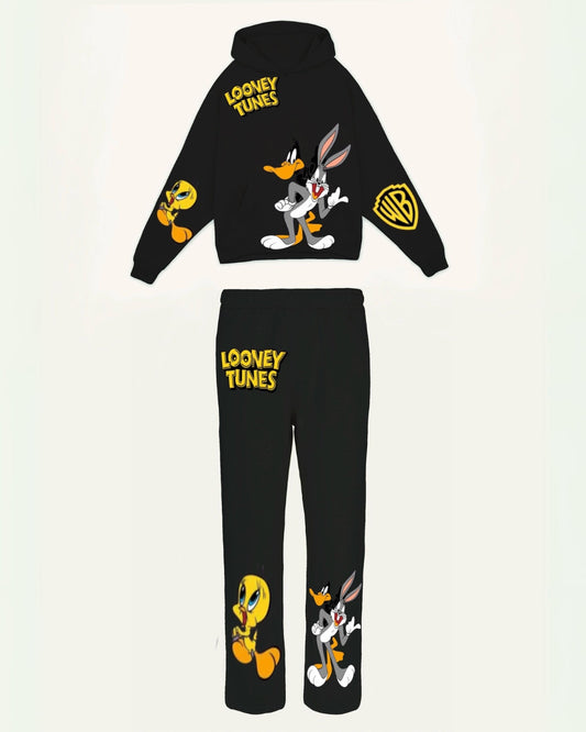 Men's No Fear Hoodie Oversized Co-ord Set - Black and Black