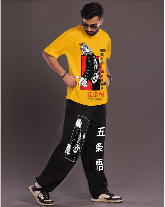 Men's Gojo Satoru Oversized Co-Ord Set - Yellow and Black