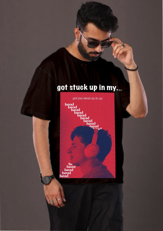 Men's Got Stuck Up in My Head Black Oversized T-Shirt