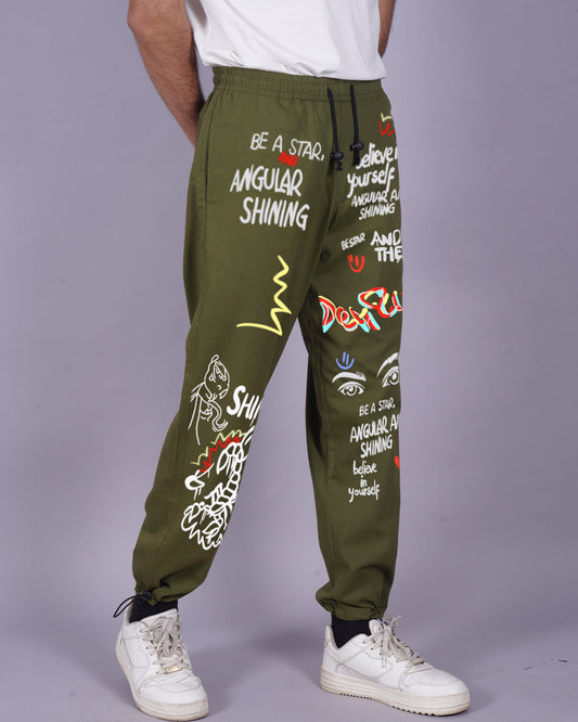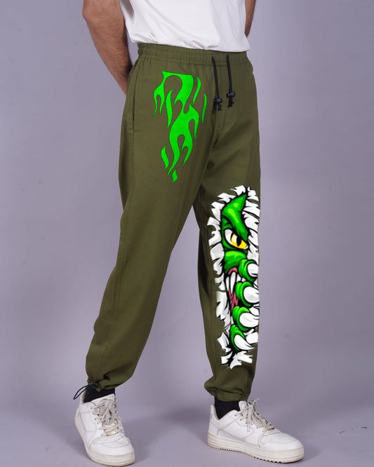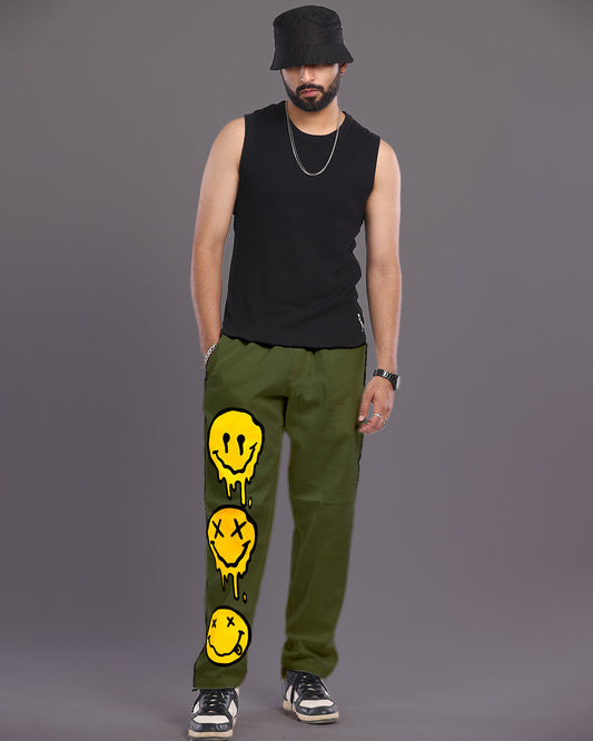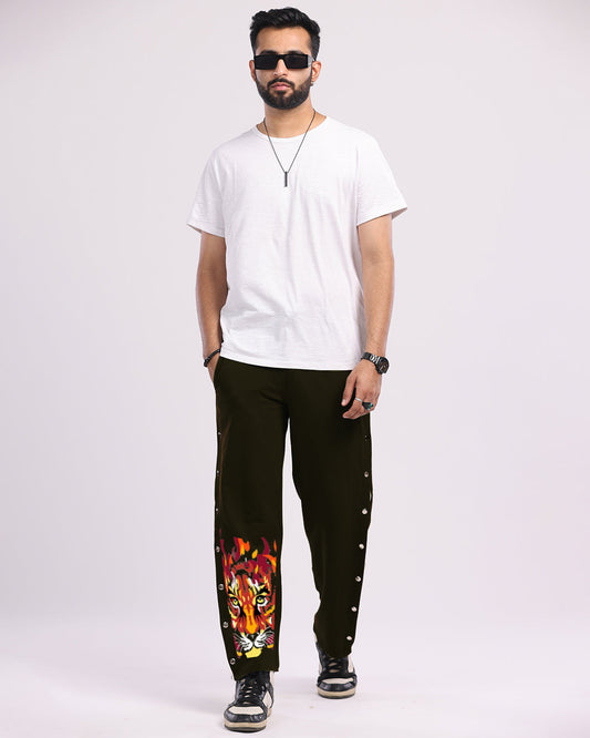 Men's Funky Olive Snap Buttons Cotton Trousers