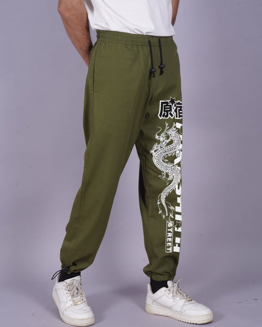 Men's Olive Cargo Parachute Pants - Japanese Dragon