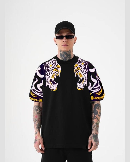 Hmuch Tiger Unisex Exclusive Oversized Tee - Black