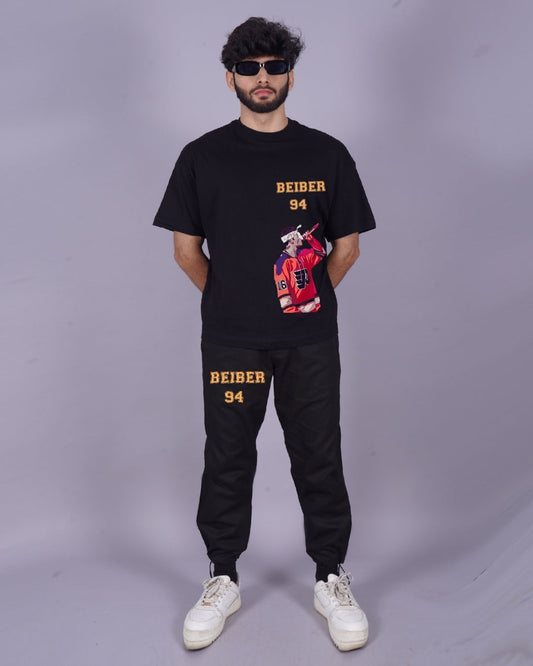 Men's Bieber Vibes Co Ord Oversized Set in Black with Bieber 94