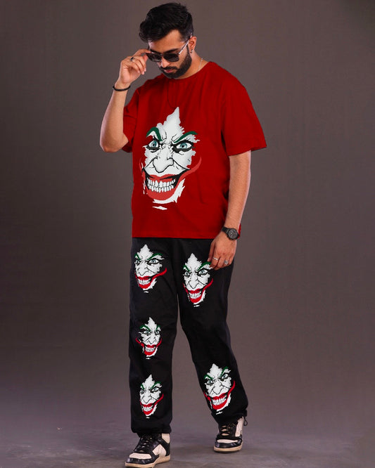 Men's Joker Oversized Co-ord Set in Red and Black