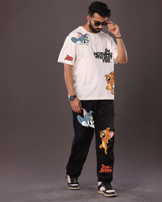 White and Black Men's Tom & Jerry Co-ord Set - Men's Choice