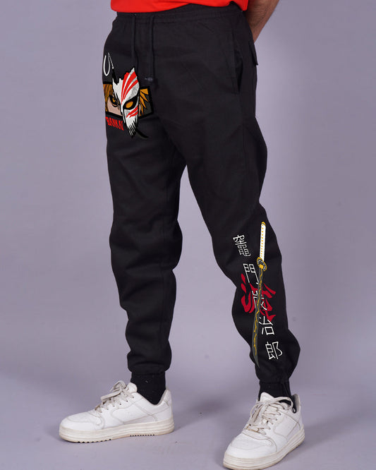 Manga Marvel: Men Black Cargo Pants with Bankai Design