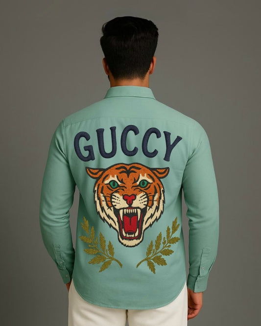 MEN'S GUCCY TIGER FULL SLEEVE GREEN SHIRT