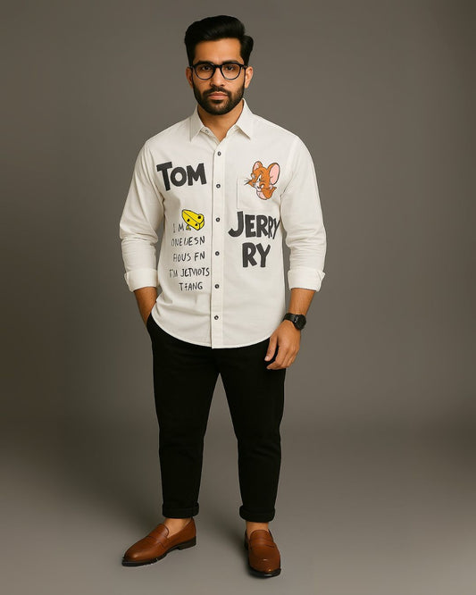 MEN'S CHEEZY JERRY FULL SLEEVE WHITE SHIRT
