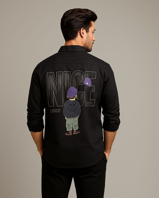 MEN'S NICE SMILE FULL SLEEVE BLACK SHIRT
