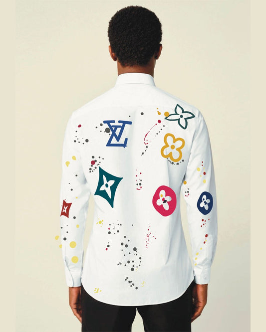 MEN'S DIOR GRID FULL SLEEVE WHITE SHIRT