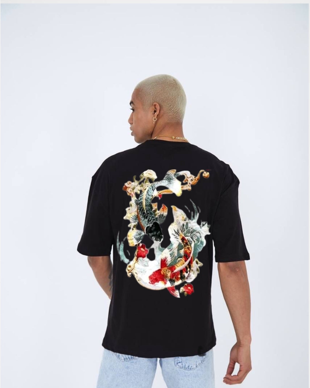 Dual Fish Unisex Exclusive Oversized Tee - Black