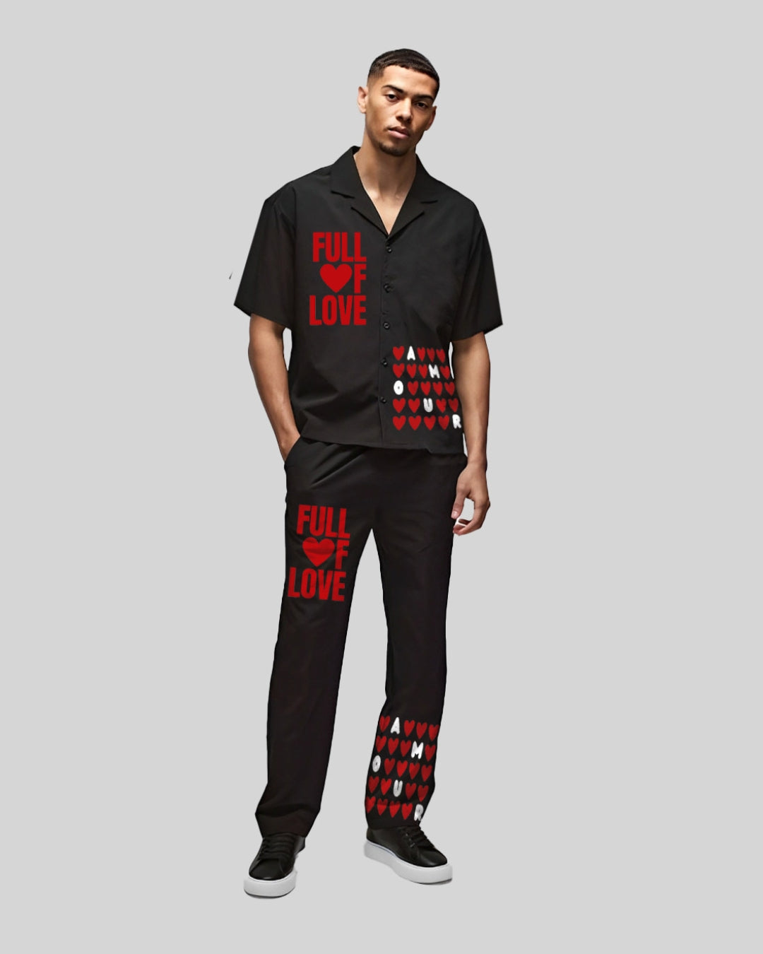 Full Of Love Half Sleeve Oversized Knitted Shirt Cord Set - Black and Black