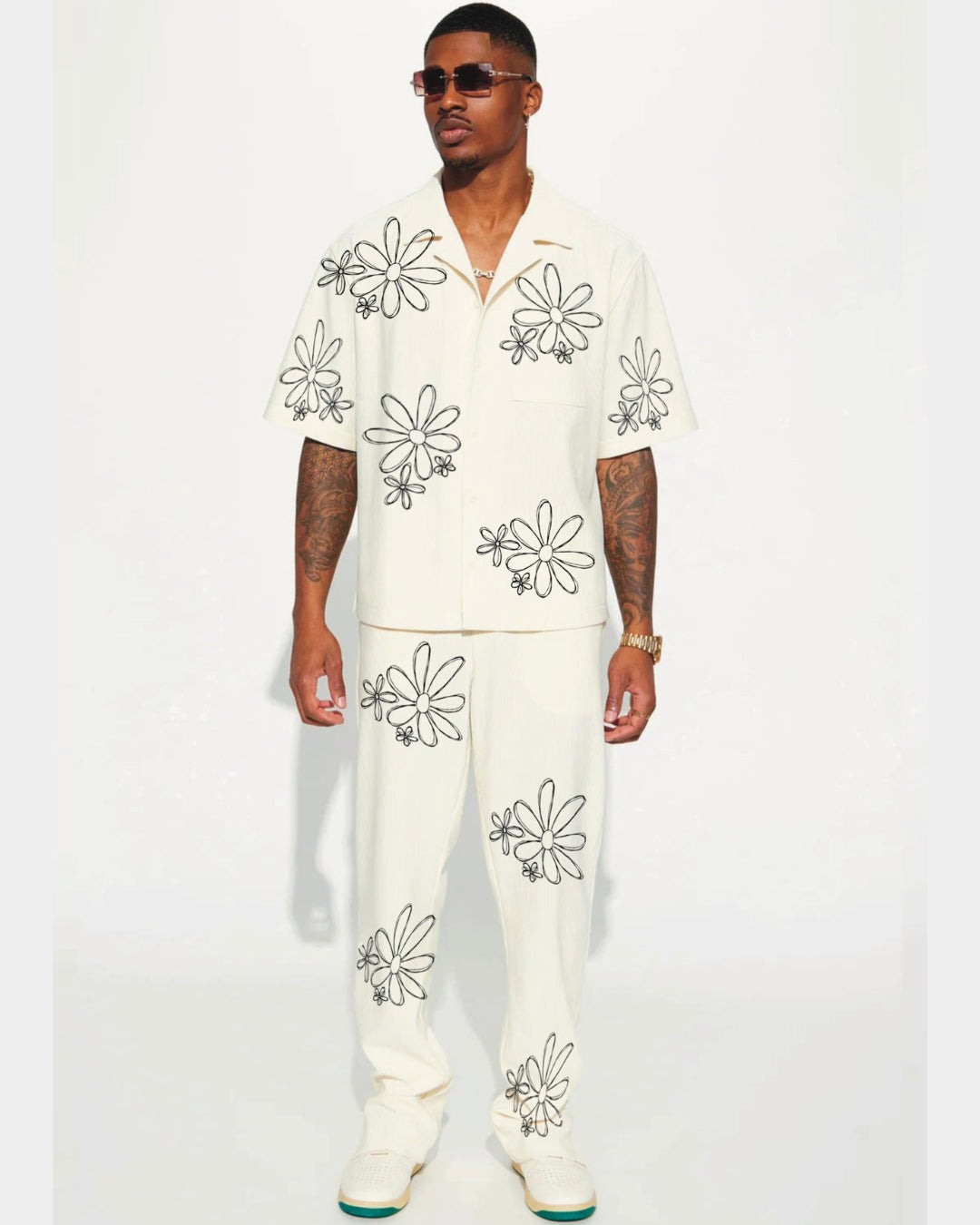 Half Sleeve Vacation Vibes Oversized Knitted Shirt Cord Set - White and White(*)