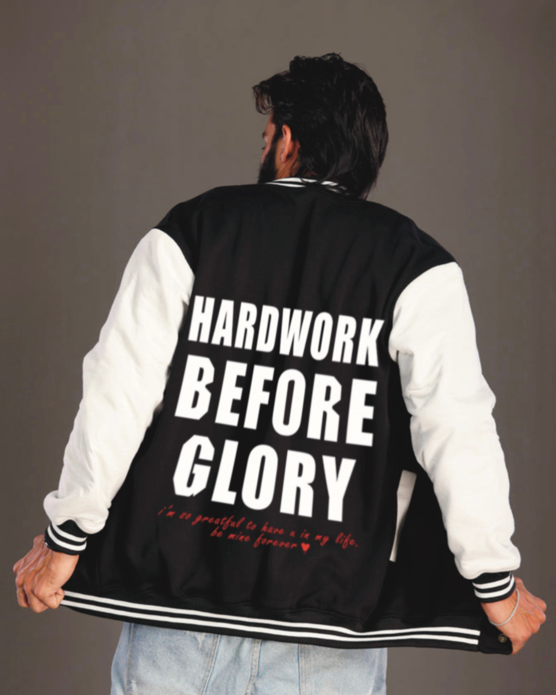 Hardwork Inspired Oversized Black Varsity Jacket for Men