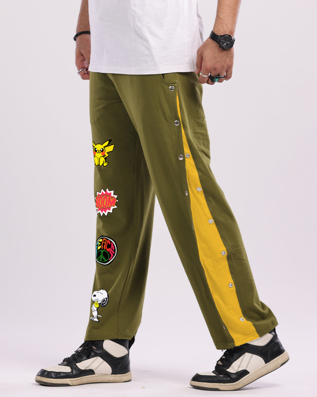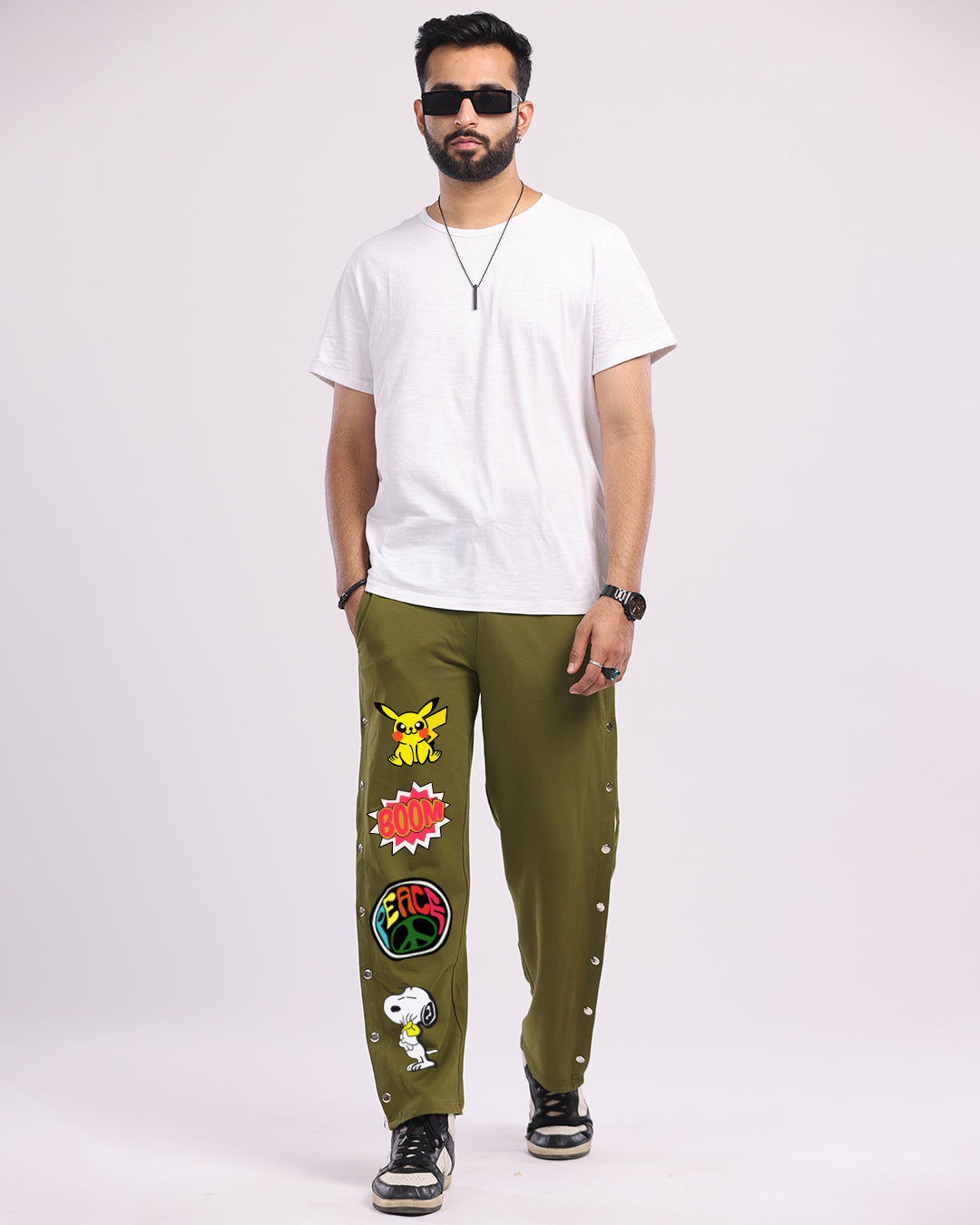 Men's Funky Olive Snap Buttons Cotton Trousers