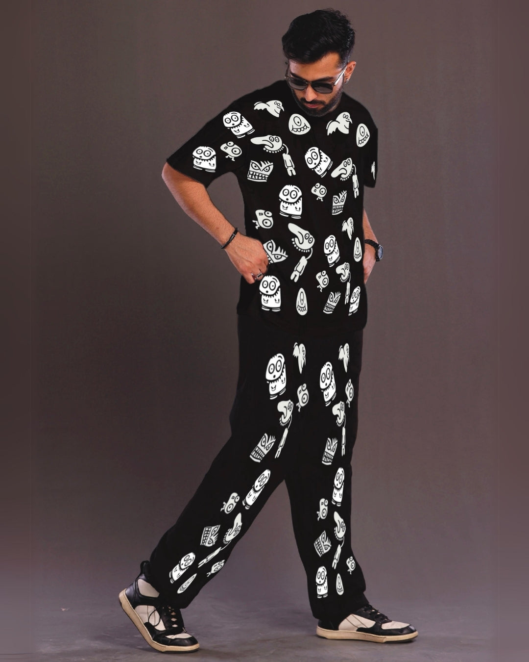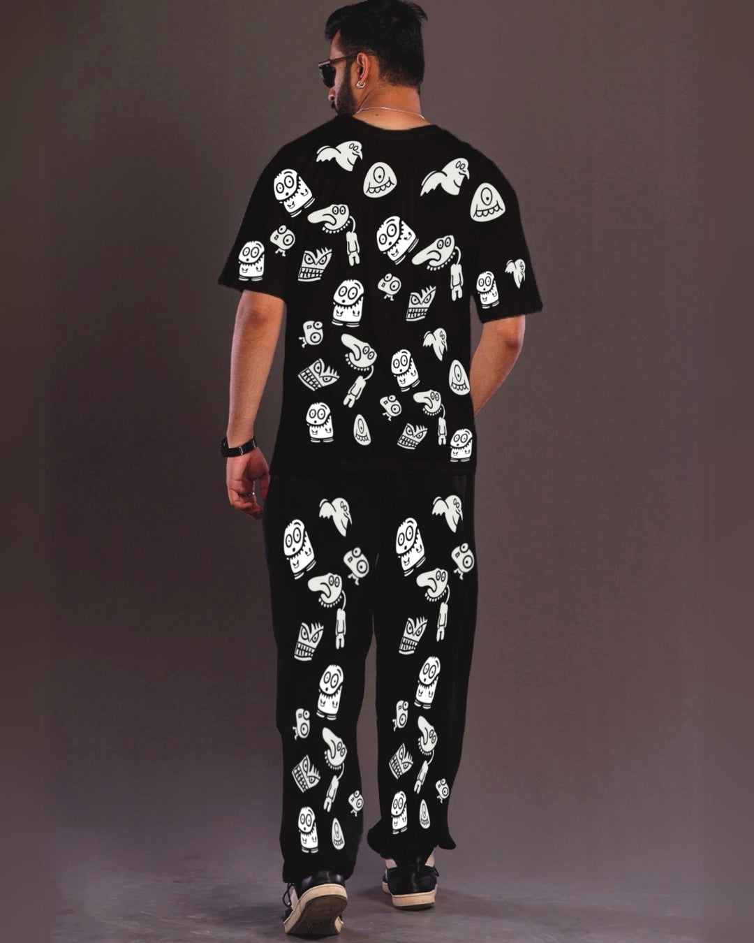 Men's Alien World Oversized Co-Ord Set - Black and Black