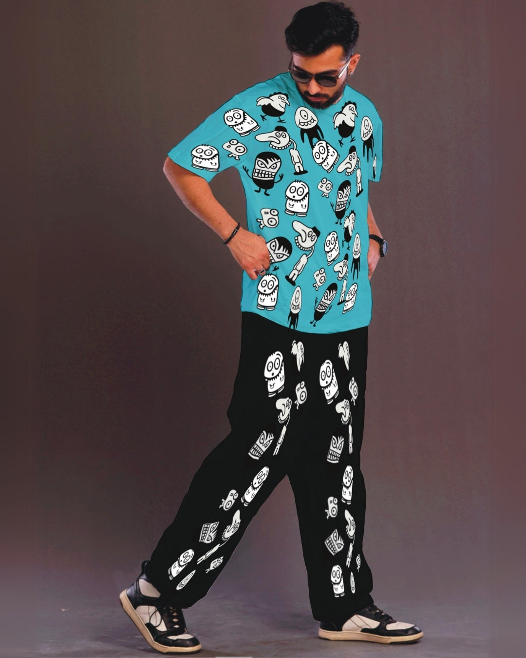 Men's Alien World Oversized Co-Ord Set - Blue and Black