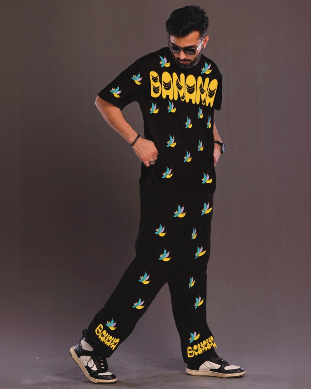 Men's Banana Design Oversized Co-Ord Set - Black and Black