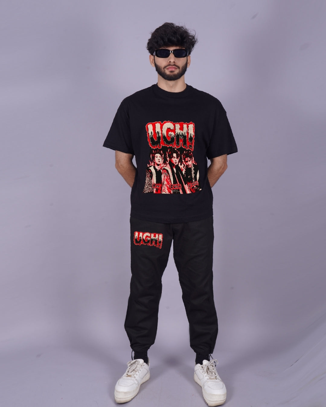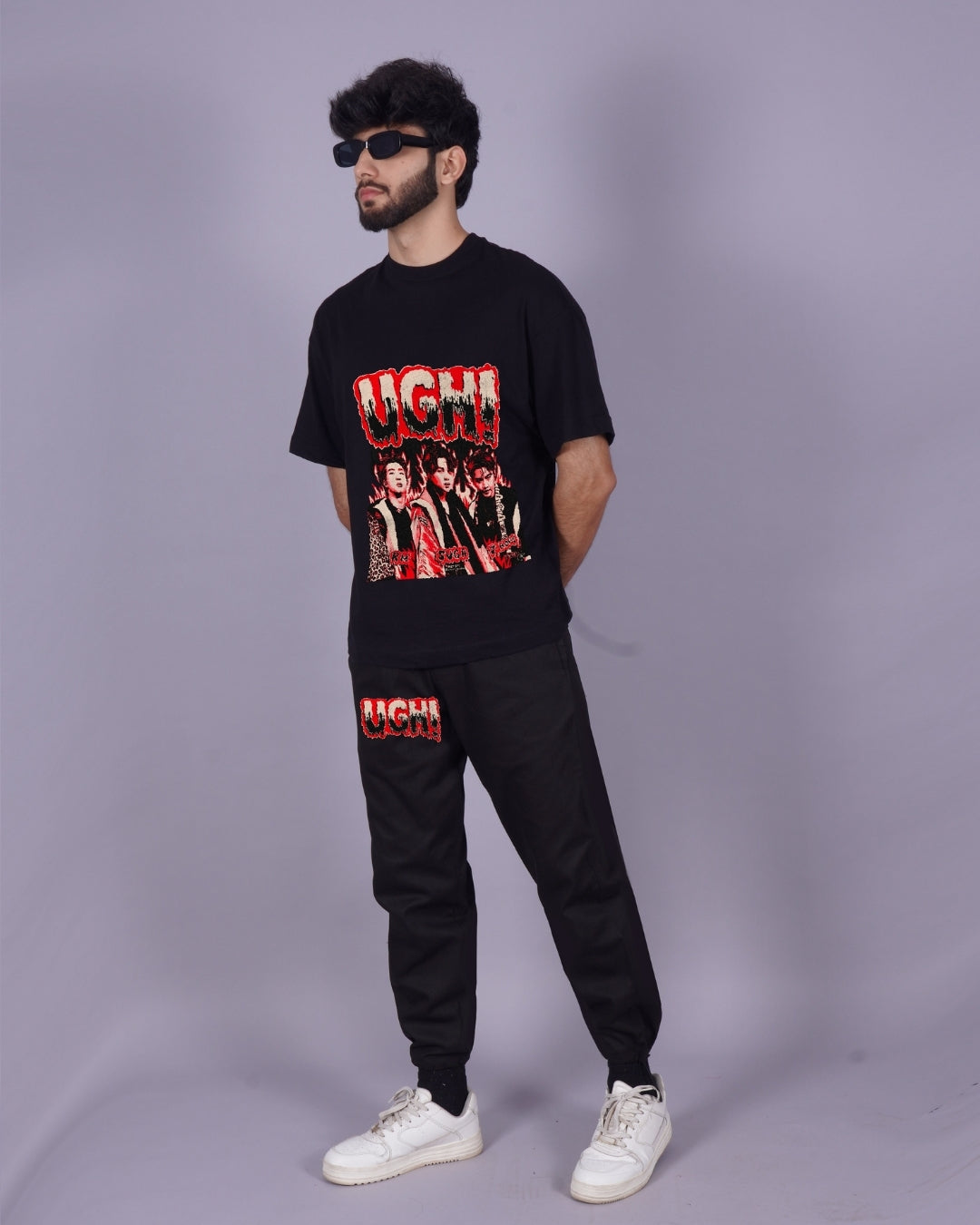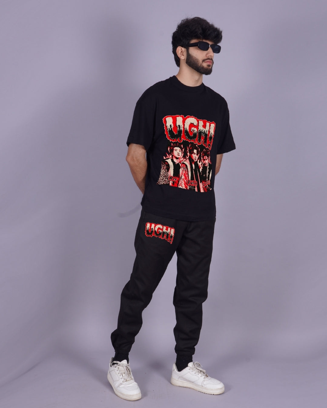 K-Pop Swagger: Men's Black BTS UGH! Oversized Co-ord Set