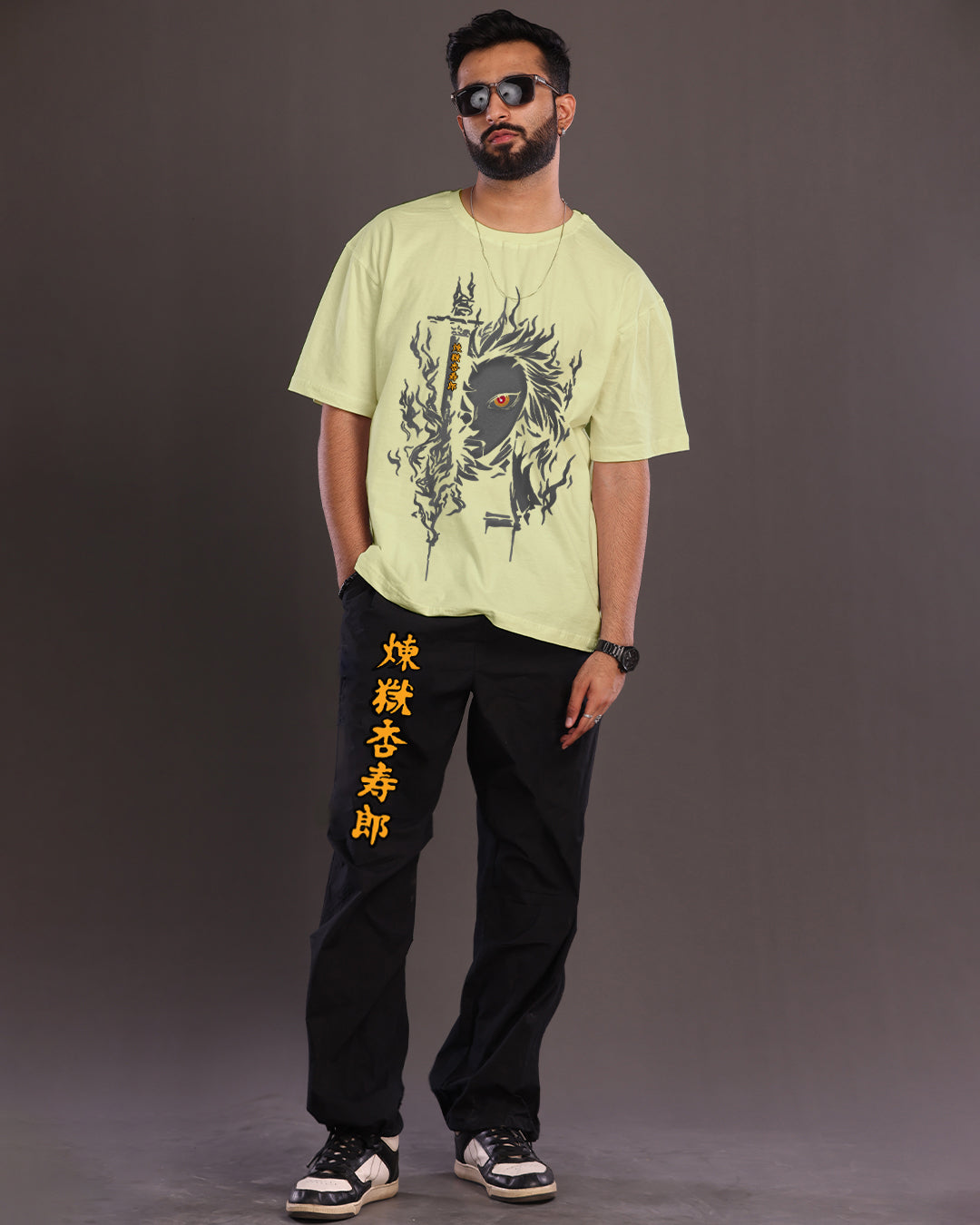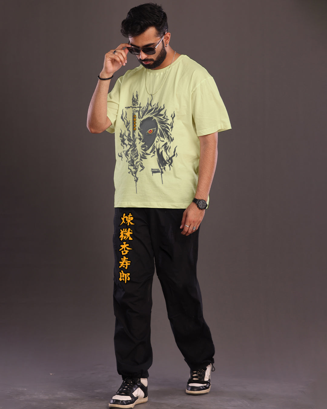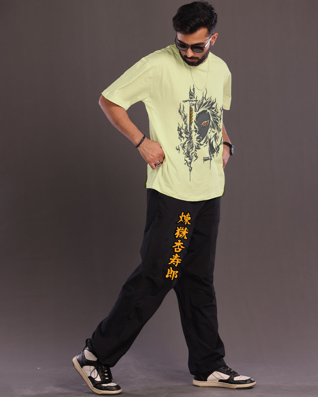 Men's Demon Slayer Oversized Co-Ord Set - Mint Green and Black