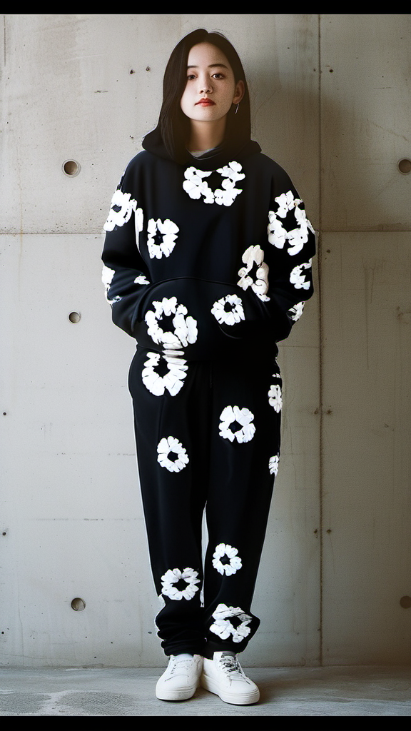Men's Flower World Hoodie Oversized Co-ord Set - Black and Black