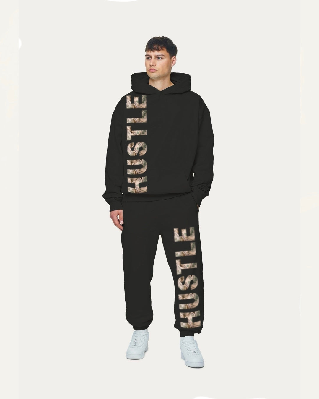 Men's Hustle Oversized Hoodie Co-ord Set - Black and Black