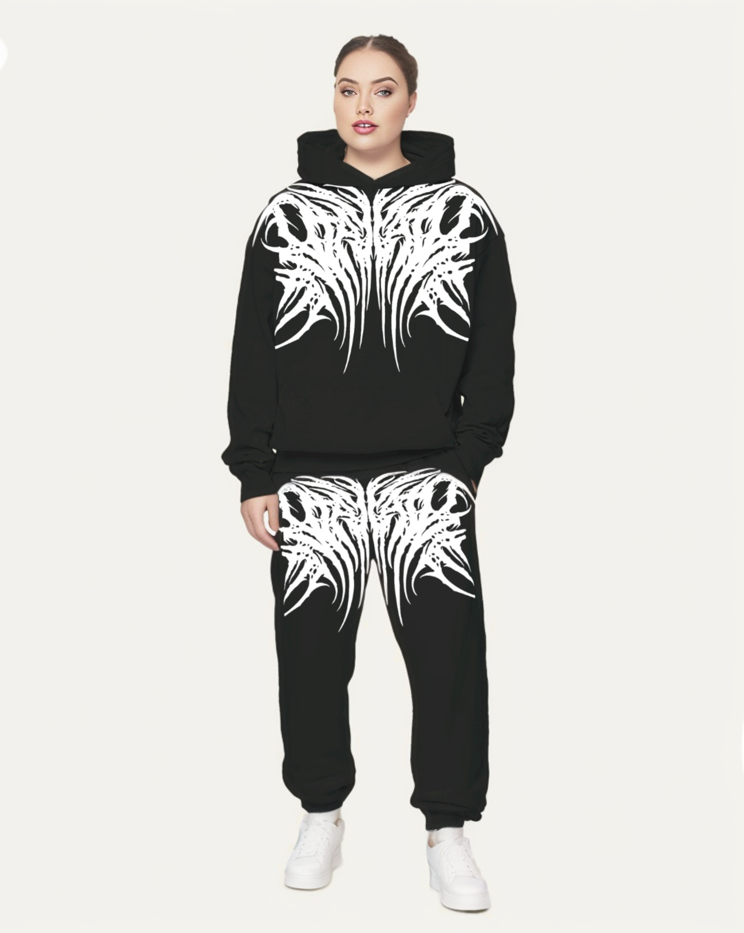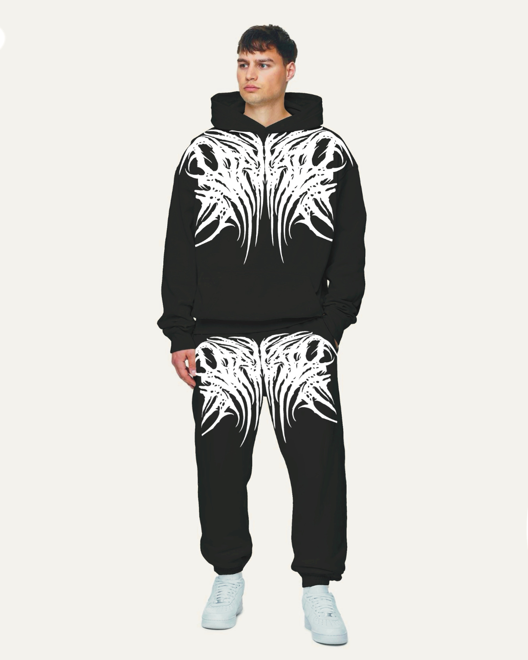 Men's No Fear Hoodie Oversized Co-ord Set - Black and Black