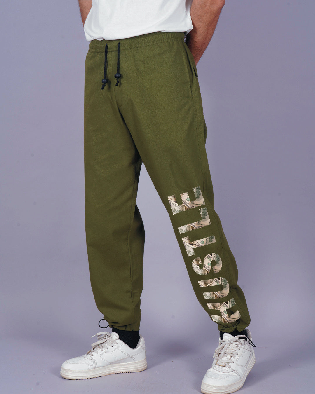 Work Hard : Men Olive Cargo Pant with Hustle Print