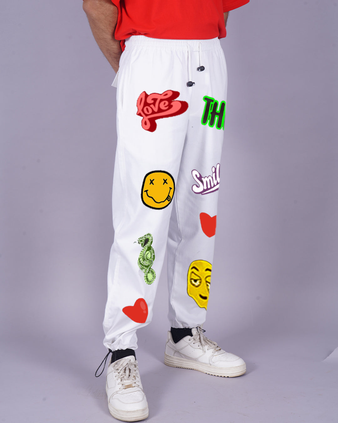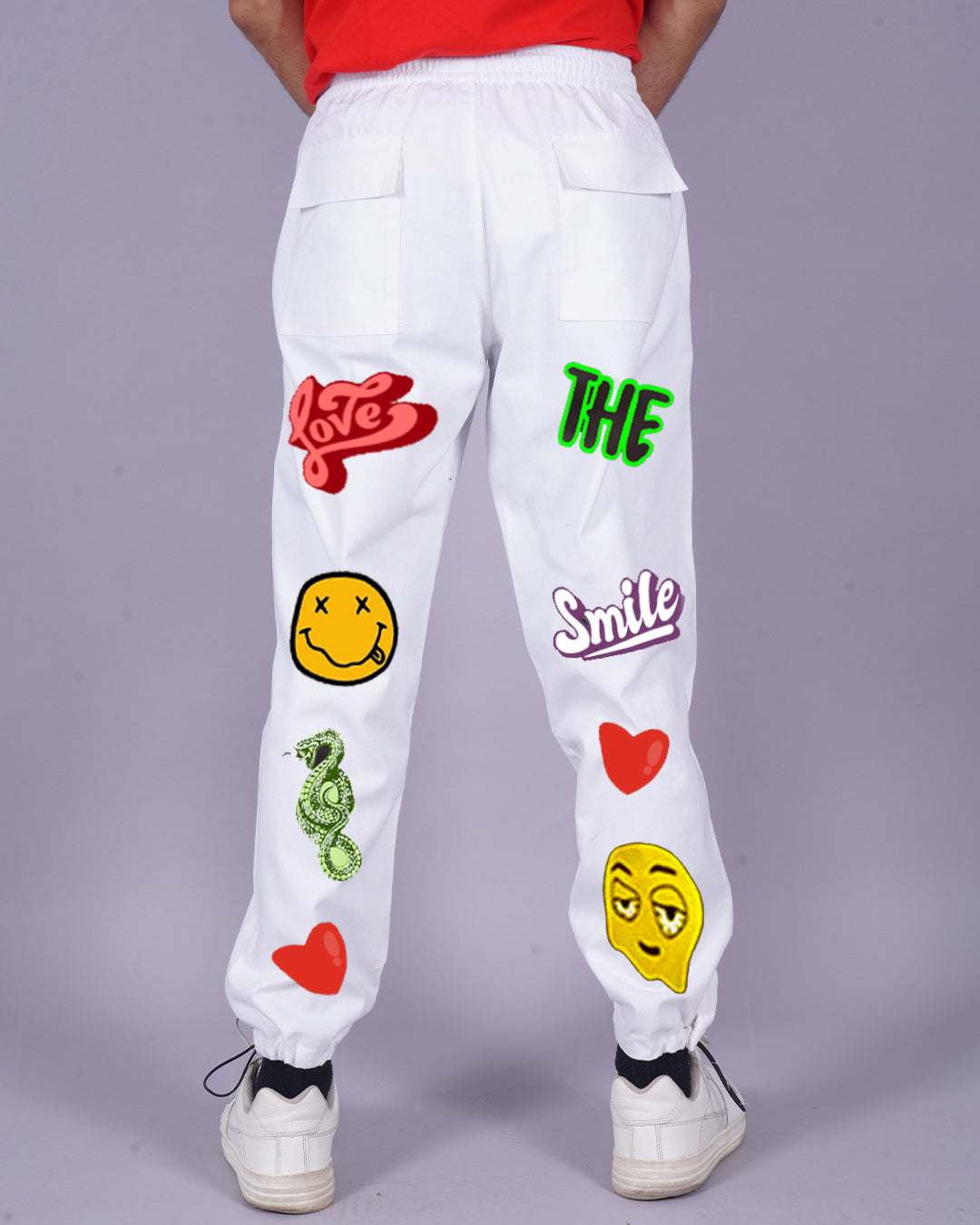 Men's White Cargo Pants - Love Smiley Design