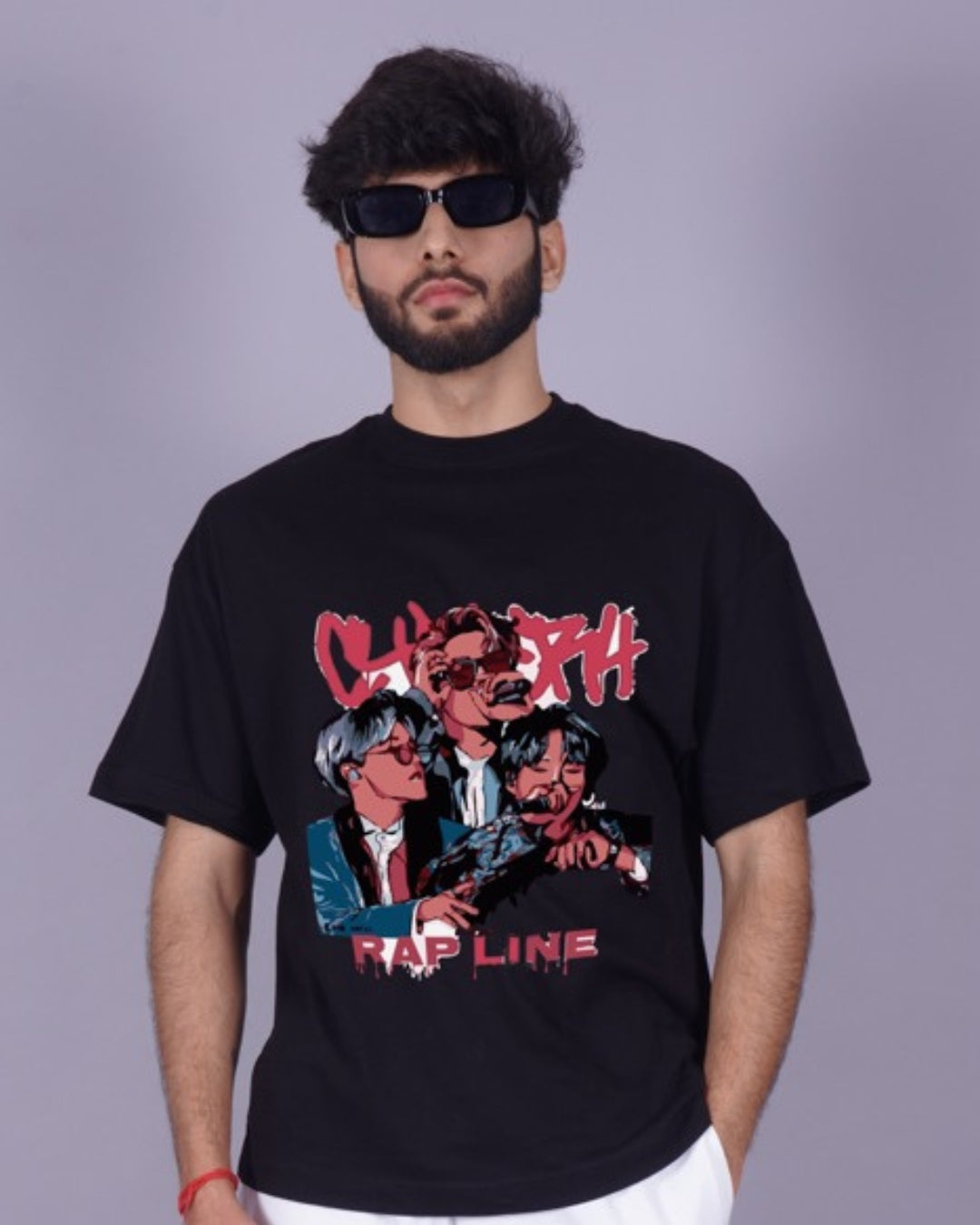 Men's BTS Oversized T-shirt - Rap Line & Army: oversized t-shirt for men is a popular pick among guys. It's a bit bigger than a regular t-shirt, giving you extra comfort. You can wear it at home, when hanging out with friends, or even for sleeping. It's super cozy and keeps your style on point. You can layer it up by adding a sleeveless jacket on top and pairing it with snug bottoms. Or, wear a full-sleeved shirt or tee underneath, or tuck it in for a neat look. Want to spice things up? Add accessories like chains, scarves, sling bags, bandanas, or hats.