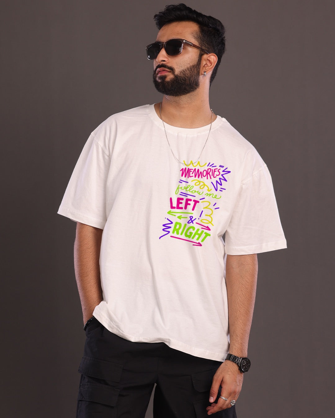 The oversized t-shirt for men is a popular pick among guys. It's a bit bigger than a regular t-shirt, giving you extra comfort. You can wear it at home, when hanging out with friends, or even for sleeping. It's super cozy and keeps your style on point. You can layer it up by adding a sleeveless jacket on top and pairing it with snug bottoms. Or, wear a full-sleeved shirt or tee underneath, or tuck it in for a neat look. Want to spice things up? Add accessories like chains, scarves, sling bags, bandanas, or hats.