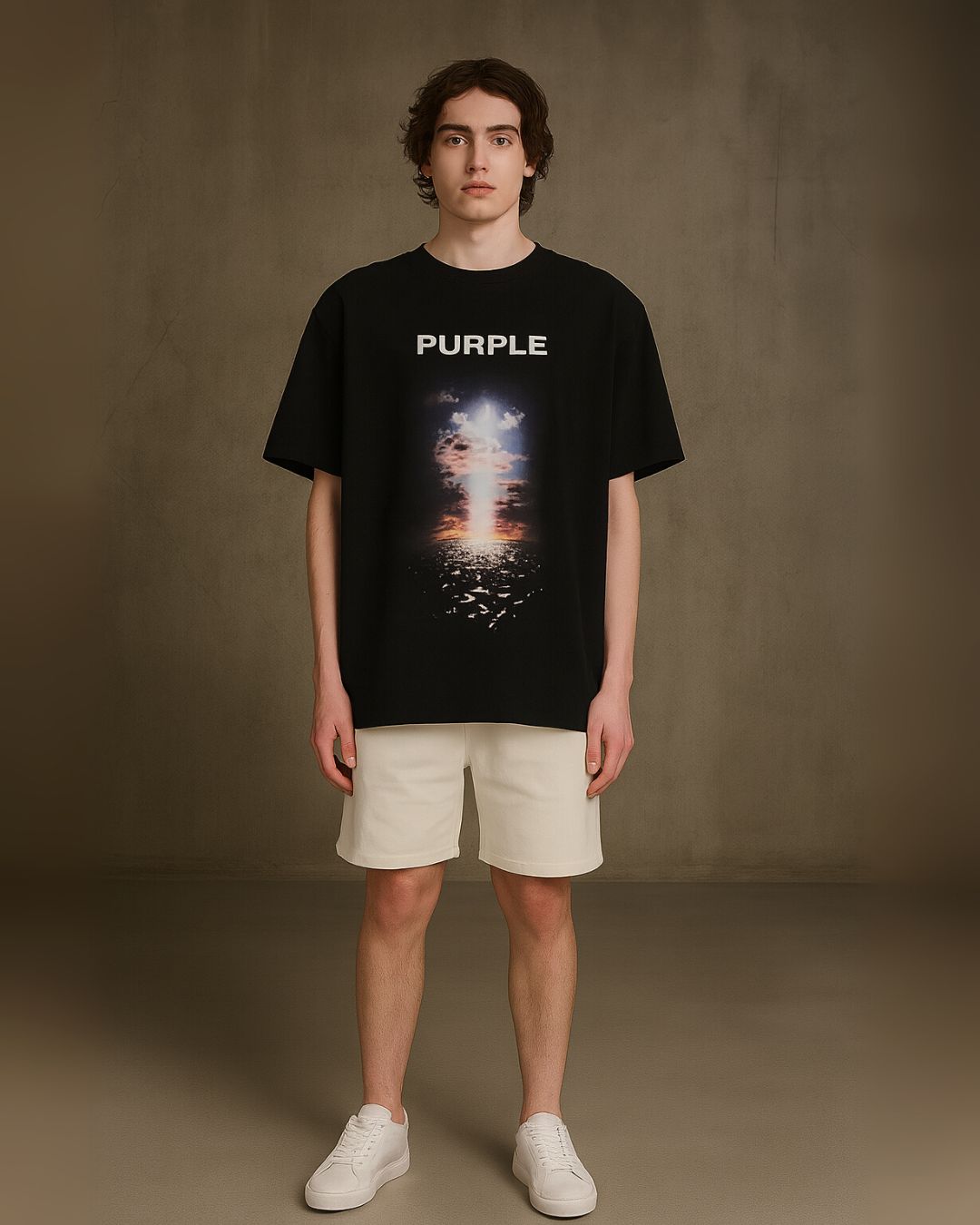 Shubman Gill Purple Tee with Shorts Cordset (Black and White ) (*)