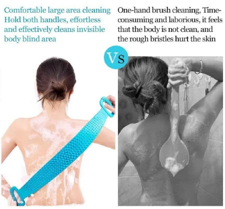 The back scrub brush features an ergonomic design for an easy and comfortable grip, ensuring effective cleaning and massaging of hard-to-reach areas. It's perfect for daily use, making your shower routine more enjoyable and effective. Unlike traditional towels, our silicone body brush belt is easy to clean and dries quickly when hung up. This reduces bacterial growth, contributing to better skin health. Its quick-drying nature ensures it remains hygienic after each use.